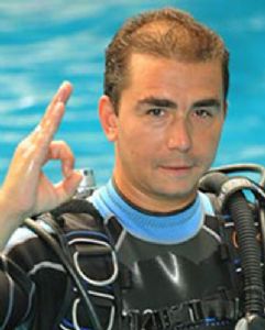 24 Şubat 1972 İstanbul doğumlu olan Cem KARABAY, Denizle tanıştığı zamanı hatırlamamakla beraber sualtına adım attığı günü daha dün olmuş gibi hatırlıyor. “Sene 1978 Menekşe Haylayf Plajı denize kumsaldan birkaç basamakla iniliyor ve derinlik benim boyumdan daha fazla. Merdivenlerden aşağıya doğru inmeye çalışırken ayağım kaydı ve bir anda sualtı bana merhaba dedi. Normal şartlarda insanların boğulma belirtileri gösterdiği bir ortamda ben sualtındaki büyülü sesleri balıkların konuşma sesleri olarak dinledim ve sadece nefessiz kaldığımı hissettiğimde basamaklara tırmanıp sudan çıktım”. Karabay sualtı ile tanışmasını işte böyle anlatıyor. 2003 yılına kadar 18 yıl müzisyenlik yapan Cem KARABAY 1989 yılında Türkiye’nin ilk Hiphop albümünü çıkardı. Uzun yıllar söz yazarlığı ve bestecilik yapan Karabay’ın eserlerini Tanju OKAN, İBO, Meyra gibi pek çok sanatçı seslendirdi. Bu zaman zarfı içerisinde kendisi de toplam iki albüm çıkardı. (Tea Party – Panter)
